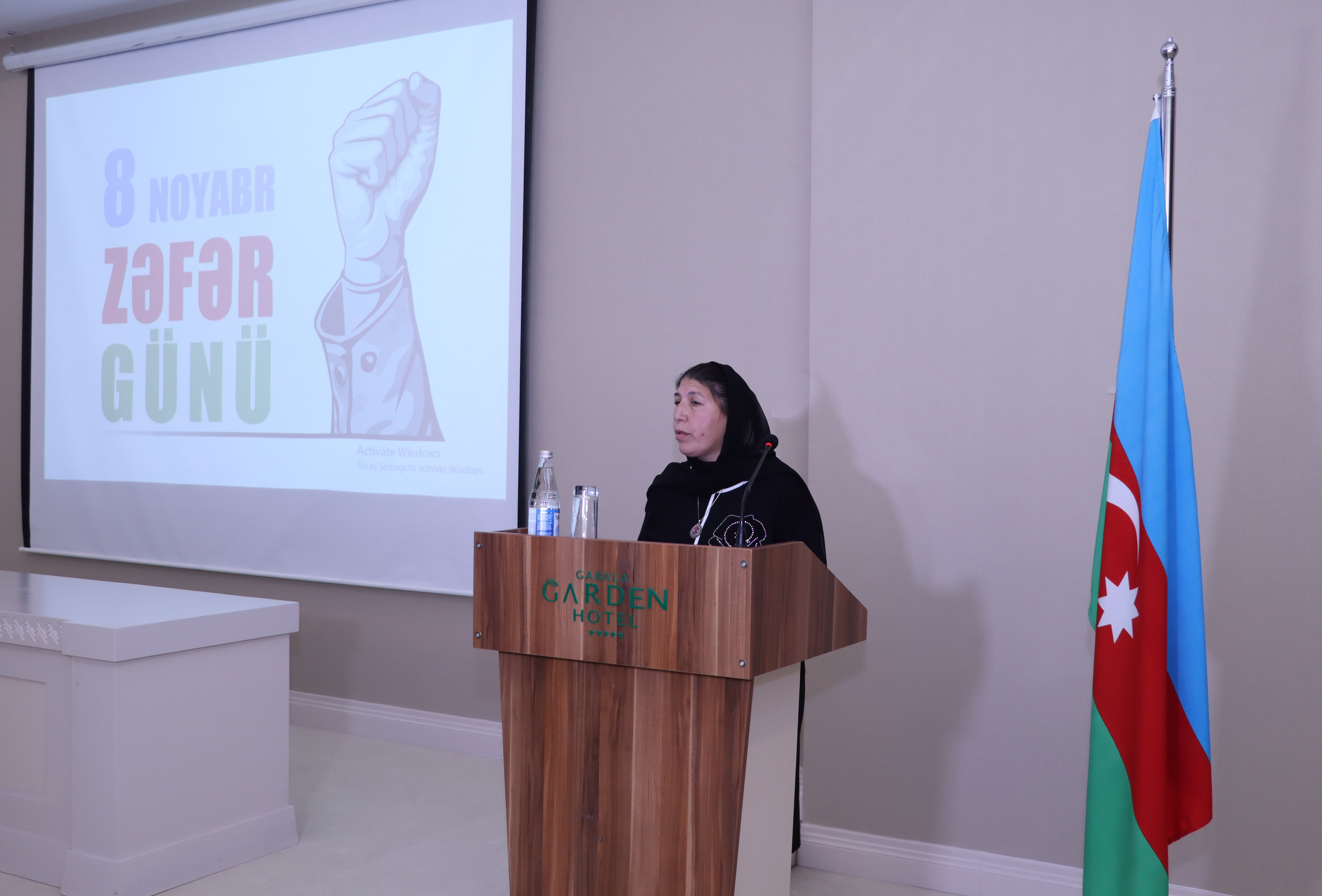 Qəbələ rayonunda 8 Noyabr - “Zəfər Günü” ilə əlaqədar ümumrayon tədbiri keçirilmişdir. Tədbir iştirakçıları öncə Birinci Qarabağ və Vətən müharibələrində şəhadətə yüksəlmiş şəhidlərin xatirəsinə ucaldılmış Şəhidlər Xiyabanı kompleksini ziyarət edərək, məzarlara və xatirə lövhələrinin qarşısına gül dəstələri düzmüşlər. Qəbələ Rayon İcra Hakimiyyətinin, hüquq-mühafizə orqanlarının, idarə, müəssisə və təşkilatların nümayəndələrinin, ziyalıların, ağsaqqalların və rayon ictimaiyyətinin iştirakı ilə keçirilən konfransda ilk olaraq Azərbaycanın Dövlət Himni səslənmiş, Ulu Öndər Heydər Əliyevin və torpaqlarımızın işğaldan azad olunması uğrunda şəhadətə yüksəlmiş şəhidlərin əziz xatirəsi 1 dəqiqəlik sükutla yad edilmişdir. Tədbirdə çıxış edən rayon icra hakimiyyətinin başçısı Səbuhi Abdullayev təməli Ulu Öndər Heydər Əliyev tərəfindən qoyulan Ordu quruculuğu strategiyasının bu gün Azərbaycan Respublikasının Prezidenti, Ali Baş Komandan İlham Əliyev tərəfindən çox böyük uğurla davam etməsindən, onun bir çağırışıyla dəmir yumruq kimi birləşən ordu-xalq birliyinin əzmlə mübarizə aparmasından və qalib gəlməsindən bəhs etmiş, şəhidlərə Allahdan rəhmət, şəhid ailələrinə səbir diləmiş, qazilərə can sağlığı arzulamışdır. YAP Qəbələ Rayon Təşkilatının sədri Abil Ağasəfov çıxış edərək bayram münasibətilə Azərbaycan xalqını təbrik etmiş, Azərbaycan Ordusunun 44 günlük Vətən müharibəsində böyük Zəfərin əldə olunmasında misilsiz xidmətlər göstərdiyini, xalqımızın qəhrəmanlığının heç zaman unudulmayacağını qeyd etmişdir. Şəhid valideynləri – Elmira Abdurəhmanova, Cəlil Səfərçinov və Azərbaycan Respublikasının Milli Qəhrəmanı Polad Həşimovun həyat yoldaşı Ofelya Salmanova çıxışlarında müharibədə əsgər və zabitlərimizin göstərdiyi qəhrəmanlıqlardan söz açaraq, onlara göstərilən diqqət və qayğıya görə Azərbaycan Respublikasının Prezidenti, Müzəffər Ali Baş Komandan İlham Əliyevə və Birinci vitse-prezident Mehriban xanım Əliyevaya dərin minnətdarlıqlarını bildirmişlər. Sonda şəhər 5 saylı tam orta məktəbin şagirdlərinin “Zəfər Günü”nə həsr olunmuş şeir kompozisiyası dinlənilmişdir.